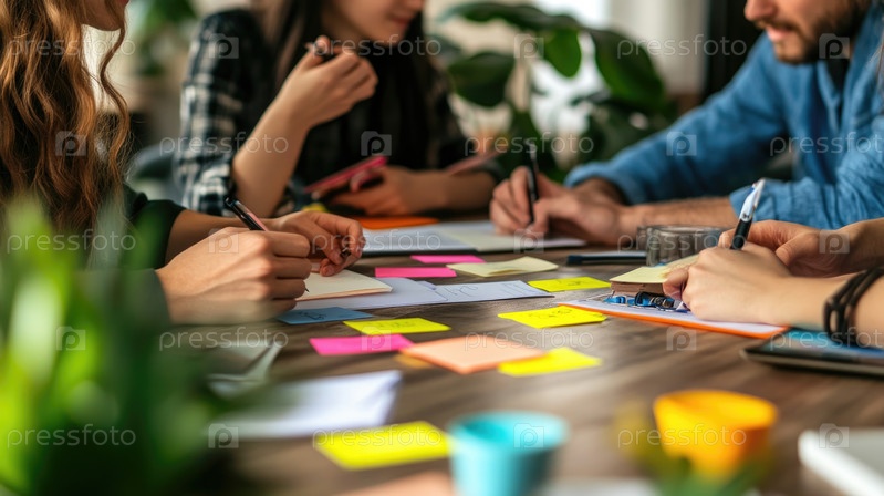 Творческий мозговой штурм с разнообразной группой в современном офисе