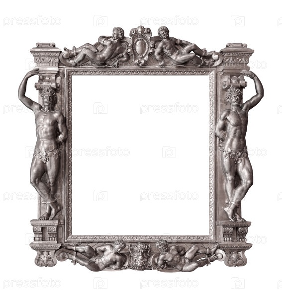 Серебряная рамка для картин, зеркал или фото, изолированная на белом фоне