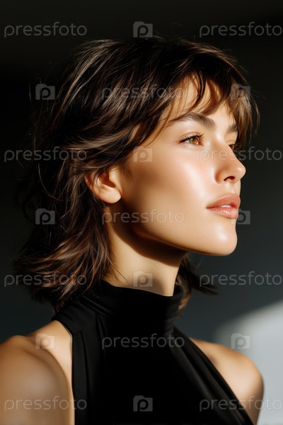 Портрет красивой молодой женщины на темном фоне. Красота, мода
