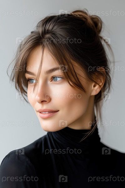 Портрет красивой молодой брюнетки в черном платье