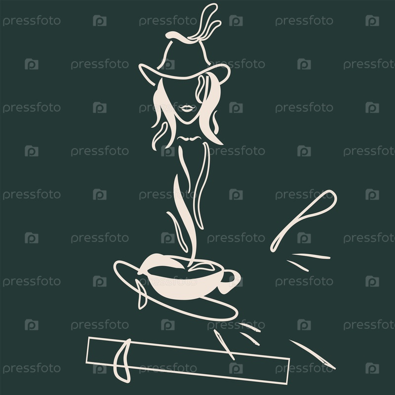 Рисунок чашки кофе и девушки для оформления меню бара