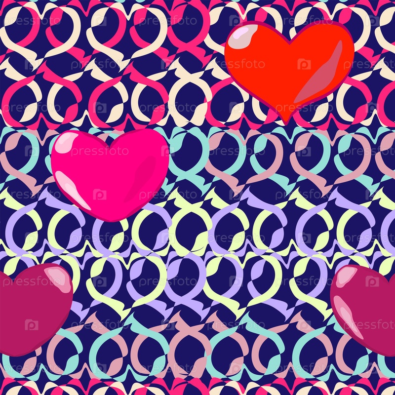 Бесшовный узор из разноцветных сердец на синем фоне