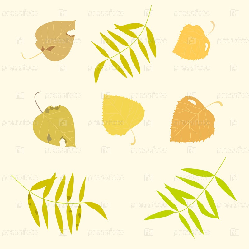 Набор осенних желтых листьев тополя, березы и ясеня