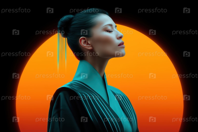 Красивая азиатская молодая женщина с закрытыми глазами. Концепция моды