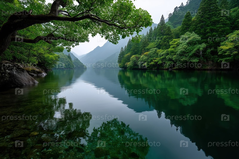 Горный пейзаж с озером и деревьями