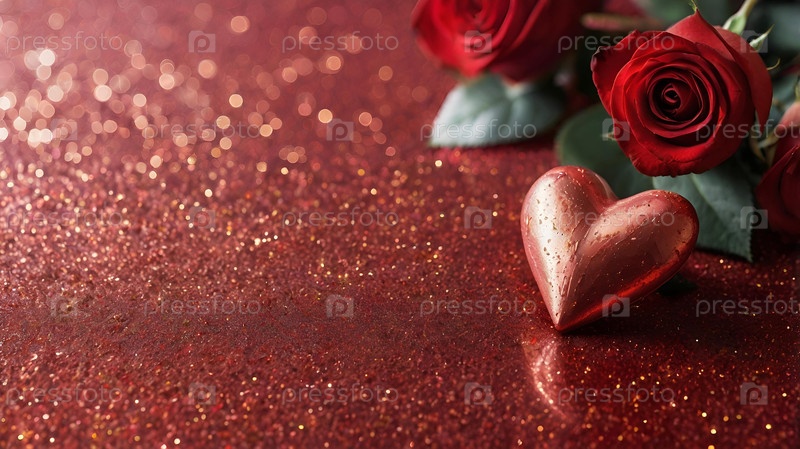Баннер ко Дню святого Валентина. Красное сердце и розы с праздничными огнями в виде бортика на заднем плане. Макет пригласительного билета на вечеринку ко Дню святого Валентина, место для копирования