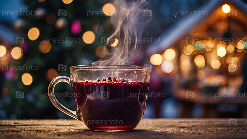 Горячий глинтвейн с цитрусовыми, корицей и анисом. Рождественский глинтвейн со специями и фруктами на столе. Традиционный горячий напиток на Рождество