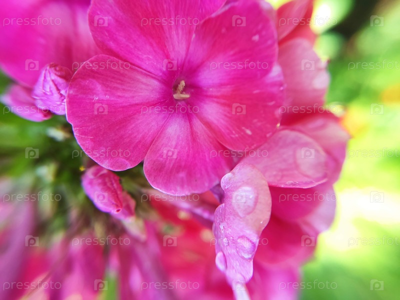 Цветы флоксы с капельками дождя макросъемка