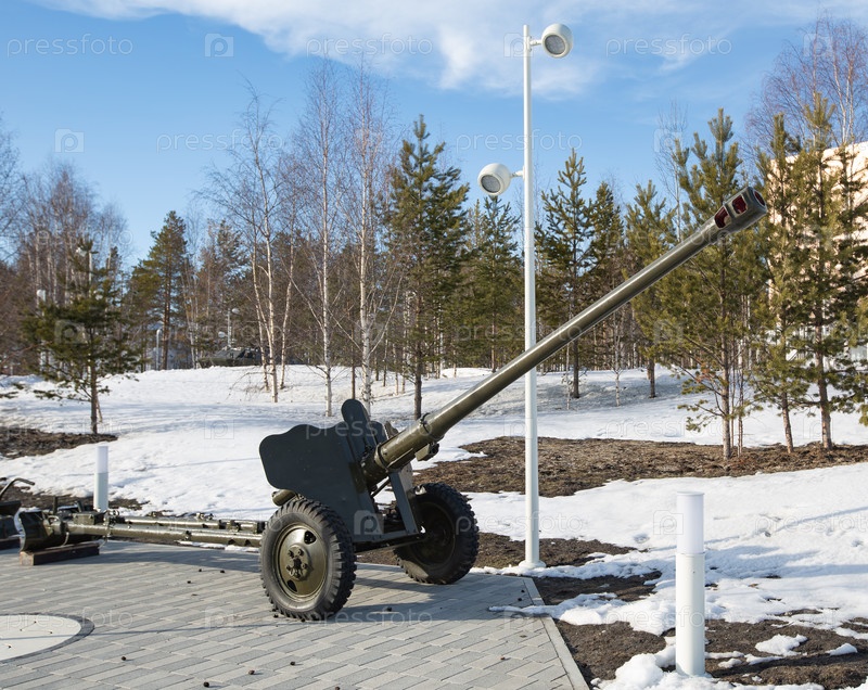 Пушка в парке Сожженной Молодости в городе Ноябрьске весной