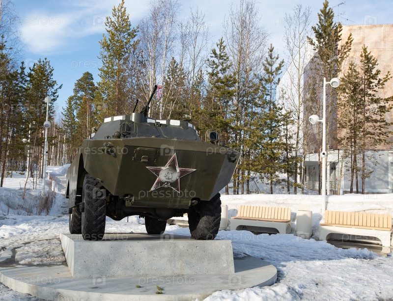 БТР в парке «Огненная молодежь» в городе Ноябрьске весной