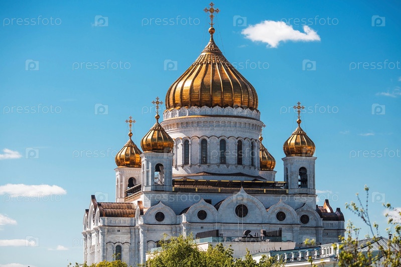 Русский православный собор. Храм Христа Спасителя в Москве в солнечный день. Российская Федерация, Москва, 28 апреля 2025 г
