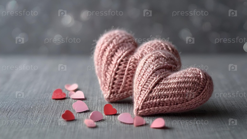 Баннер. Фон ко Дню святого Валентина. Вязаные сердечки с праздничными огнями в виде бортика на заднем плане. Макет пригласительного билета на вечеринку ко Дню святого Валентина, место для копирования