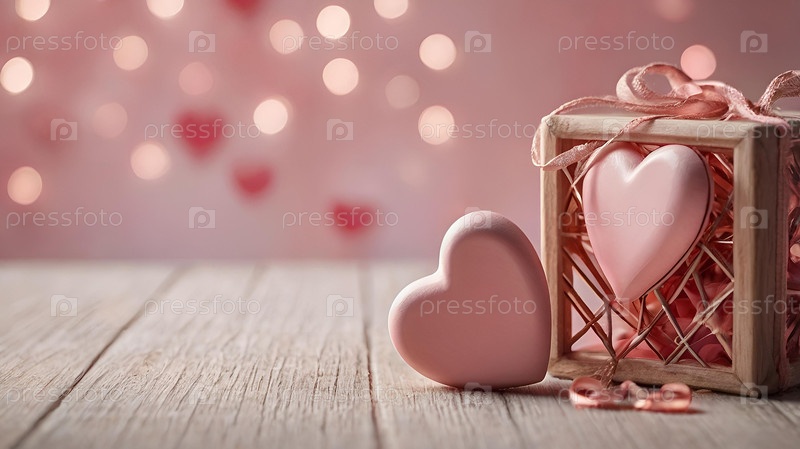 Баннер ко Дню святого Валентина. Сердца с праздничными огнями в виде бортика на заднем плане. Макет пригласительного билета на вечеринку ко Дню святого Валентина, место для копирования