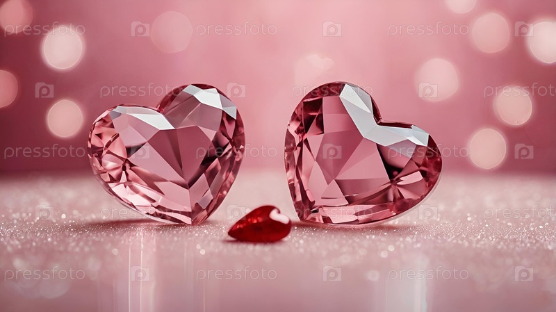 Баннер ко Дню святого Валентина. Кристально-розовые сердца с праздничными огнями в виде бортика на заднем плане. Макет пригласительного билета на вечеринку ко Дню святого Валентина, место для копирования