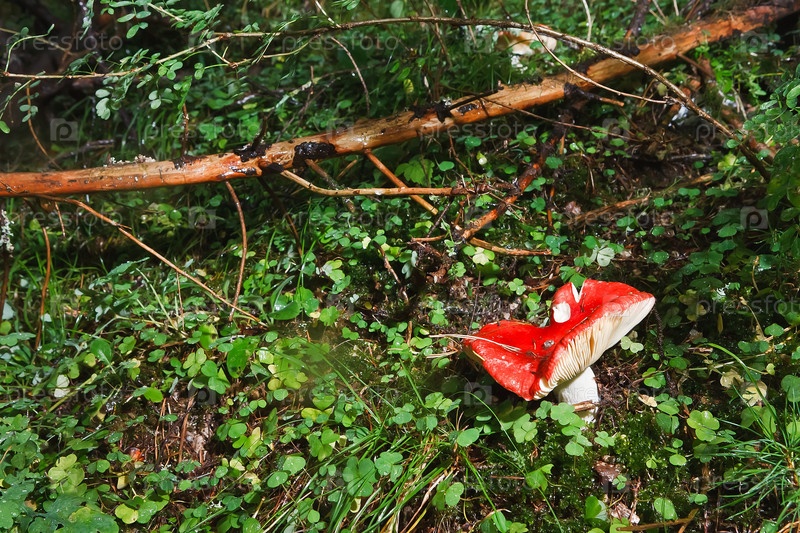Красные лесные грибы на зеленом лугу