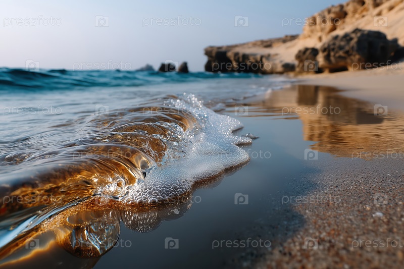 Красивый морской пейзаж на закате. Крупный план красивого песчаного пляжа