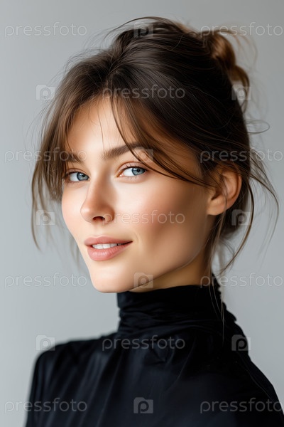 Портрет красивой молодой брюнетки в черном платье