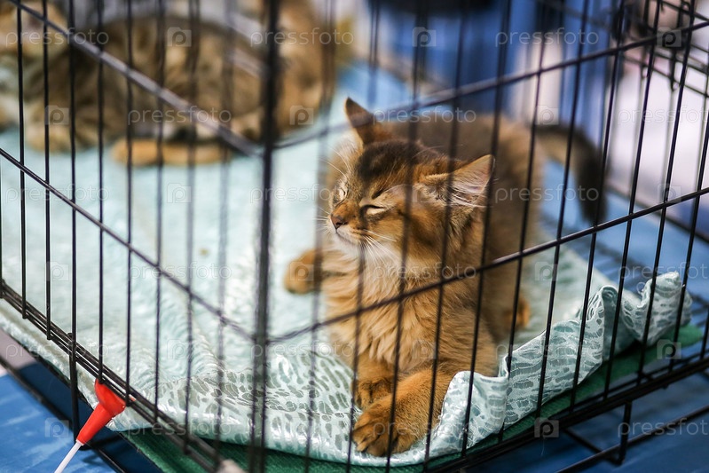 Кот сидит в клетке