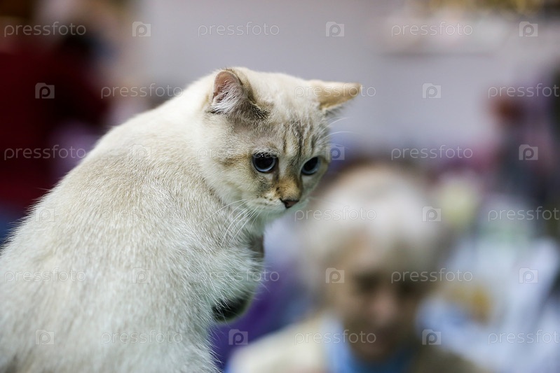 Серый кот на руках у хозяйки