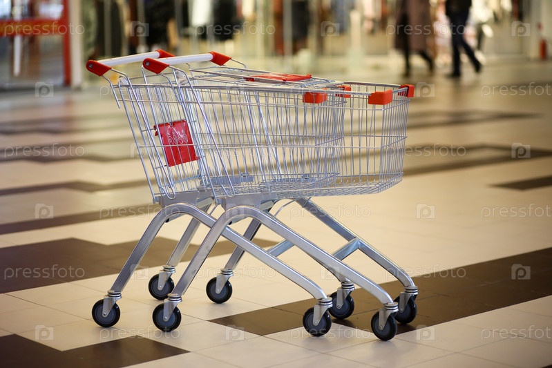 Краснодар, Россия-15 декабря 2018 г. Тележка для покупок в торговом центре