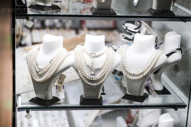 Драгоценные украшения на полке в магазине