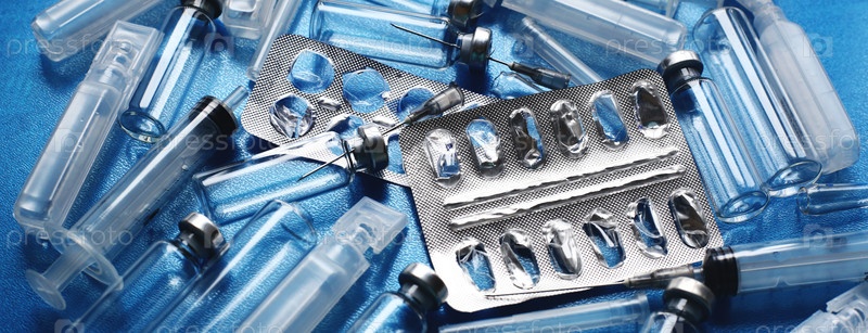 Пустой блистер, шприц, ампула. Отсутствие лекарств. Лекарства и лечение болезней