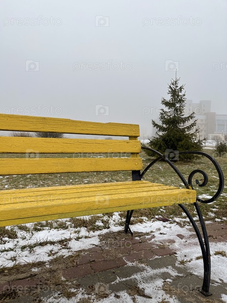 Желтая скамейка в парке Жлобина, Республика Беларусь