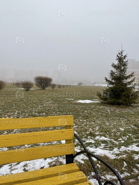Желтая скамейка в парке Жлобина, Республика Беларусь
