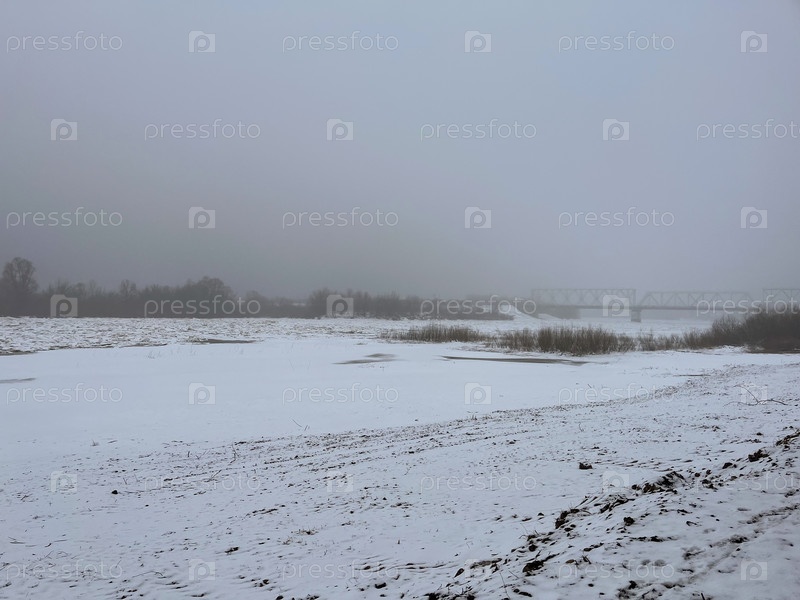 Зимой река Днепр покрывается льдом в парке города Жлобин, Республика Беларусь