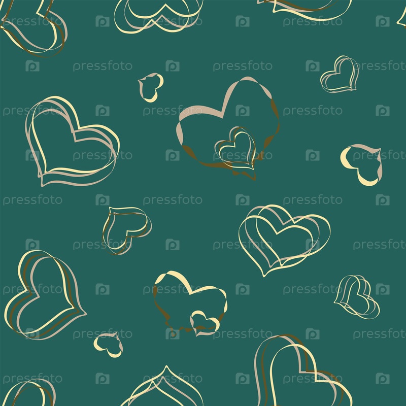 Узор в виде контура сердец на зеленом фоне