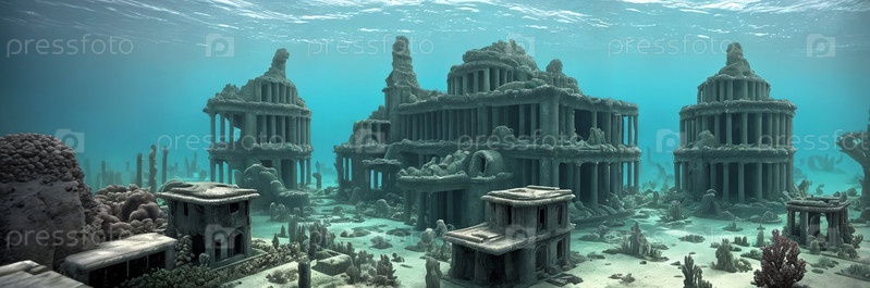 Откройте для себя мистические глубины подводных руин. Затопленные здания, покрытые кораллами колонны, стаи экзотических рыб скользят по улицам. Погрузитесь в очаровательные останки затерянного города. Генеративный ИИ