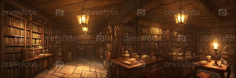 Зайдите в Зачарованный книжный магазин Расположенный в волшебном переулке, его полки заполнены старинными книгами при свете свечей Тени танцуют на древних томах. Откройте для себя чудеса. Генеративный ИИ