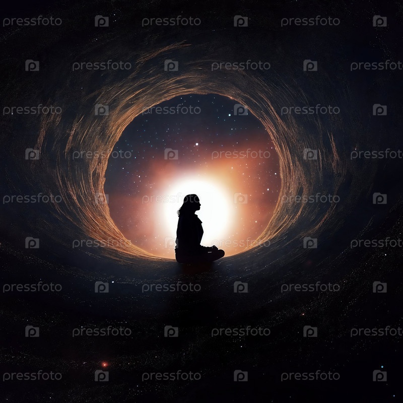 Медитирующая женщина на краю черной дыры. Генеративный ИИ