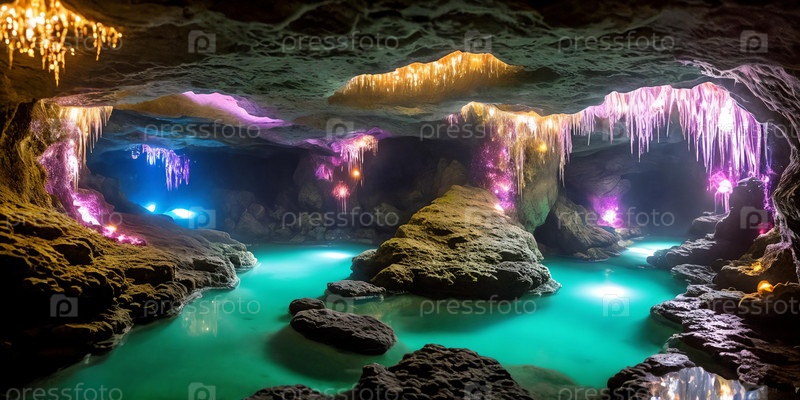 Светящиеся пещеры. Подземная страна чудес, пещера, украшенная люминесцентными кристаллами. Их мягкое свечение открывает извилистые туннели, отражающие бассейны и обещание скрытых сокровищ