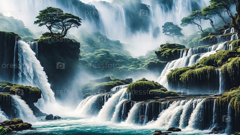 Фокусная точка. Самая высокая точка водопада, где вода падает вниз, создавая захватывающее зрелище