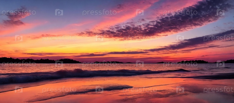 Закатное сияние. Небо, пылающее теплыми оттенками оранжевого, розового и фиолетового