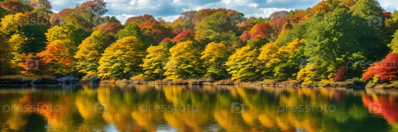 Красочная палитра осени, сосредоточенная на спокойном озере, отражающем яркую листву