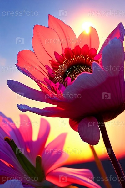 Цветочная фантазия. Изящные детали распускающегося цветка, ловящего последние лучи заходящего солнца, подчеркивающие его нежные лепестки и яркие цвета в мечтательном, воздушном свете