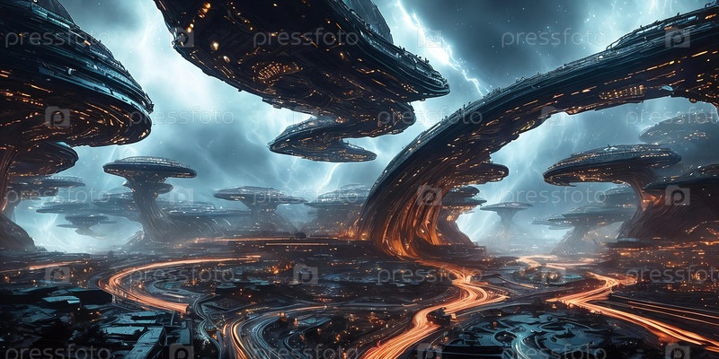 Межзвездные врата. Фантастическая космическая станция, парящая среди скопления закрученных червоточин и энергетических космических аномалий, служащая центром межгалактических путешествий и космической торговли