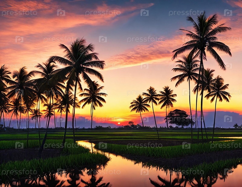 Зеленые рисовые террасы купаются в лучах заката