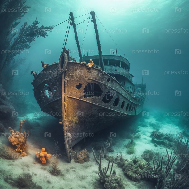 Кораблекрушение под водой крупным планом. Генеративный ИИ
