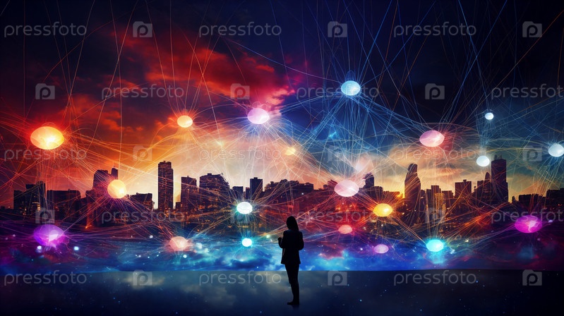Городской пейзаж, подключенный к Интернету. Генеративный ИИ