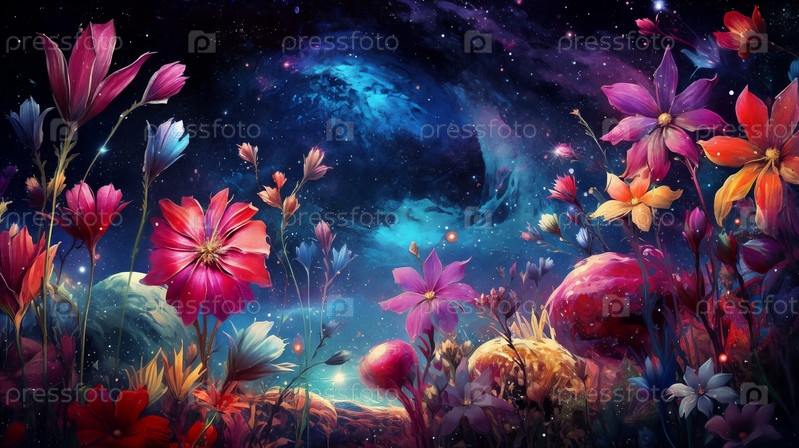 Сказочные цветы на фантастической планете. Генеративный ИИ