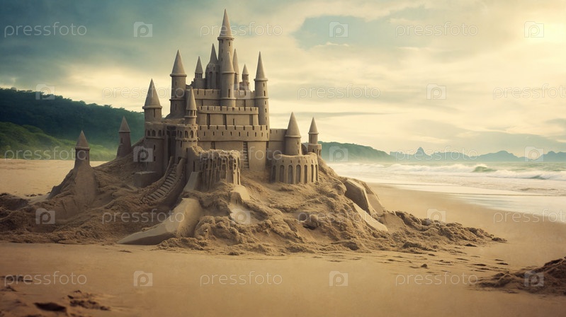 Воображение воплощается в песчаном замке, созданном с использованием сложных деталей и причудливых узоров. Генеративный ИИ
