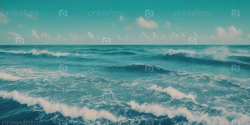 Морская панорама с волнами на переднем плане. Генеративный ИИ