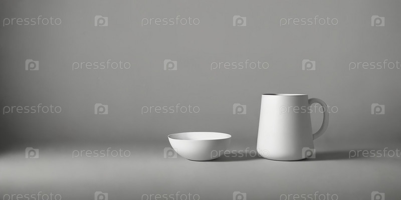 Композиция из простых объектов на простом сером фоне. Генеративный искусственный интеллект
