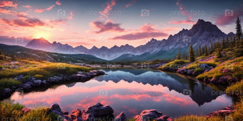 Поход по безмятежному горному лесу. Генеративный ИИ