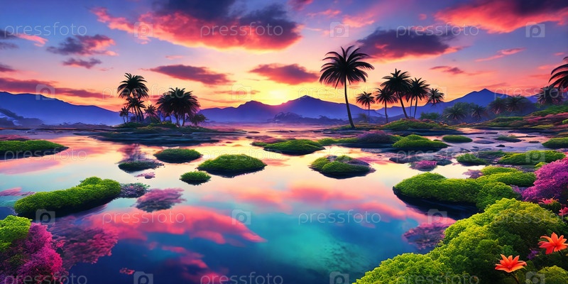 Закат окрашивает небо в оттенки розового и голубого над спокойным морем