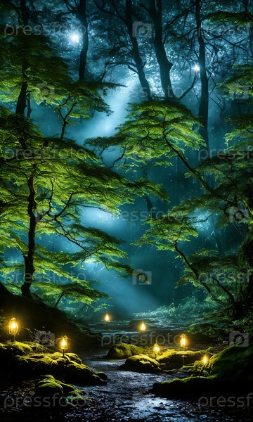 Лесная поляна, освещенная лунным светом. Среди древних деревьев лунный луч освещает скрытую поляну. Грибы, поцелованные росой, мягко светятся, а светлячки танцуют в ночи. Неземная красота этого мистического места встречи
