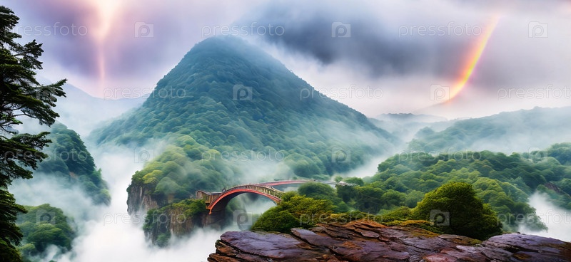 Радужный мост. Изгибаясь через туманное ущелье, радужный мост соединяет два мира. Его цвета меняются в зависимости от света, и путешественники — люди или маги — пересекают между мирами. Эфемерная красота моста